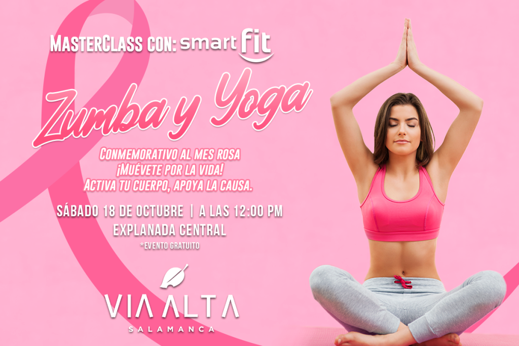Te invitamos a moverte con propósito este sábado 18 de octubre. A las 12 p.m., SmartFit nos llevará a una masterclass gratuita de Zumba y Yoga. No importa si eres principiante o experto, lo importante es participar, cuidarnos y crear conciencia sobre la importancia de la salud física y emocional.
