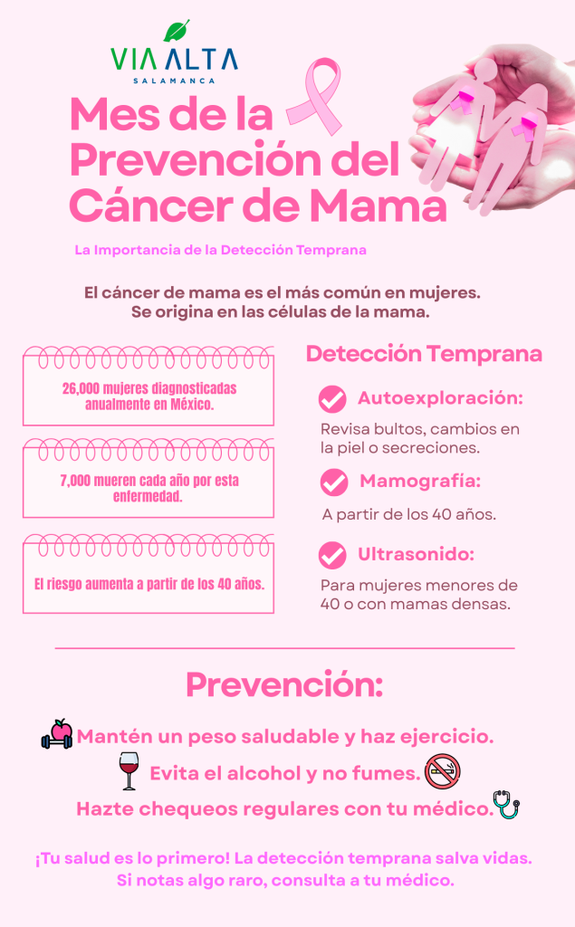 El cáncer de mama es una de las principales causas de preocupación para la salud de las mujeres, pero cuando se detecta a tiempo, las posibilidades de tratamiento exitoso aumentan significativamente. En este mes rosa, queremos fomentar la prevención, el autocuidado y la información.